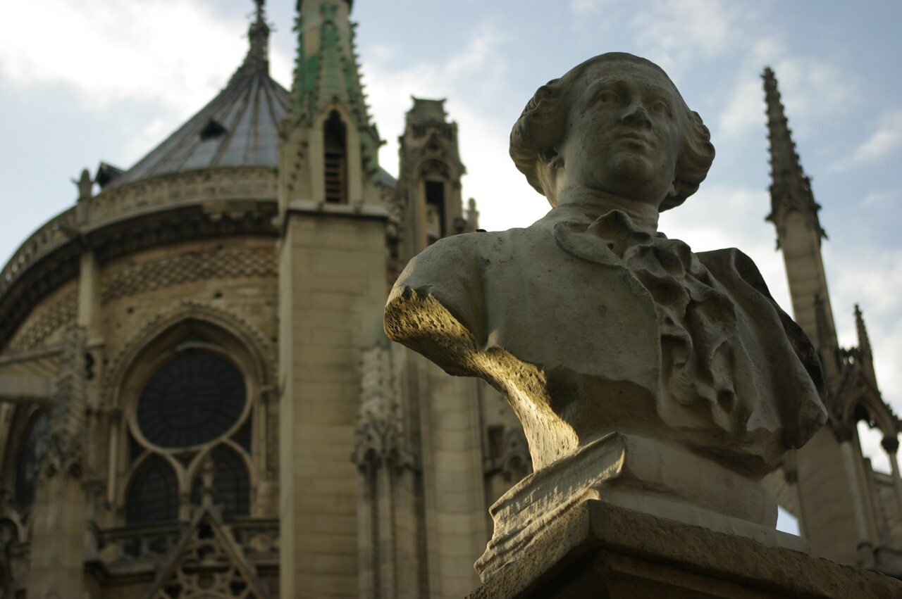 Photo prise en fin d'après-midi dans le jardin derrière Notre Dame à Paris.