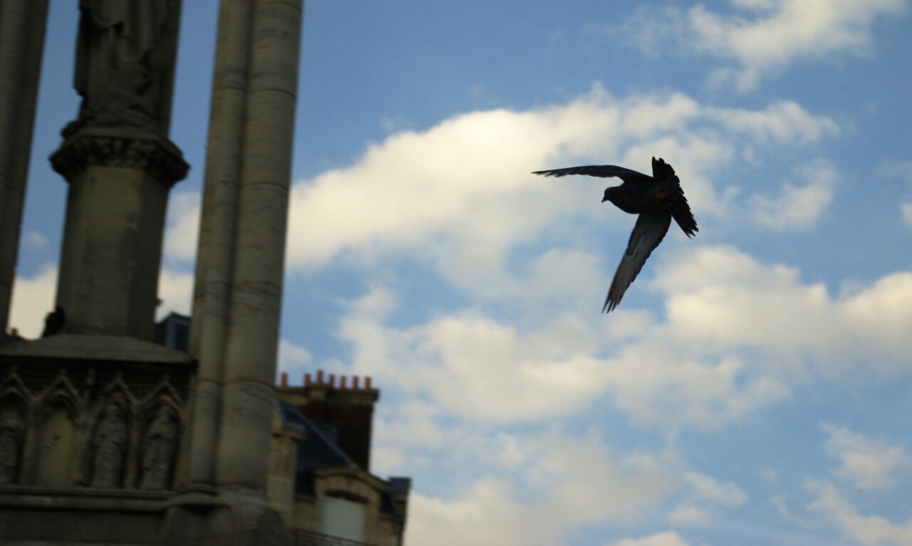Voici mon premier test de la prise de vue en panoramique. Mais qu'est ce qu'ils vont vite ces pigeons !!