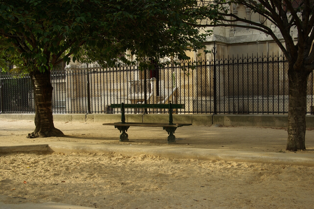 Photo prise, en fin d'après-midi, dans le parc derrière Notre Dame à Paris.